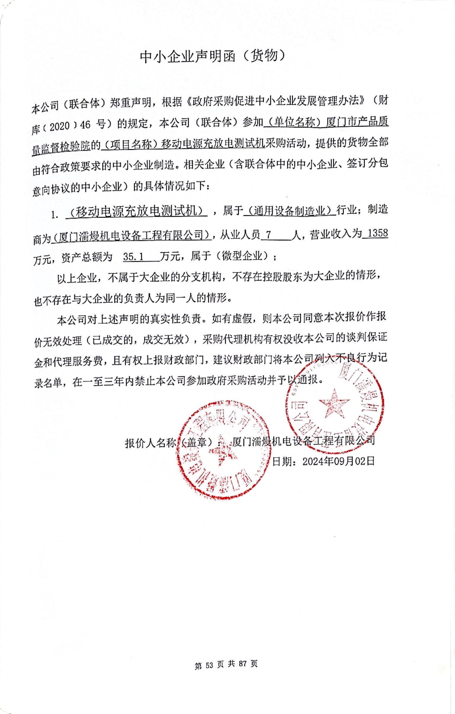 厦门万翔-竞争性谈判-XM2024-TZ0478移动电源充放电测试机项目中标(成交)结果公告