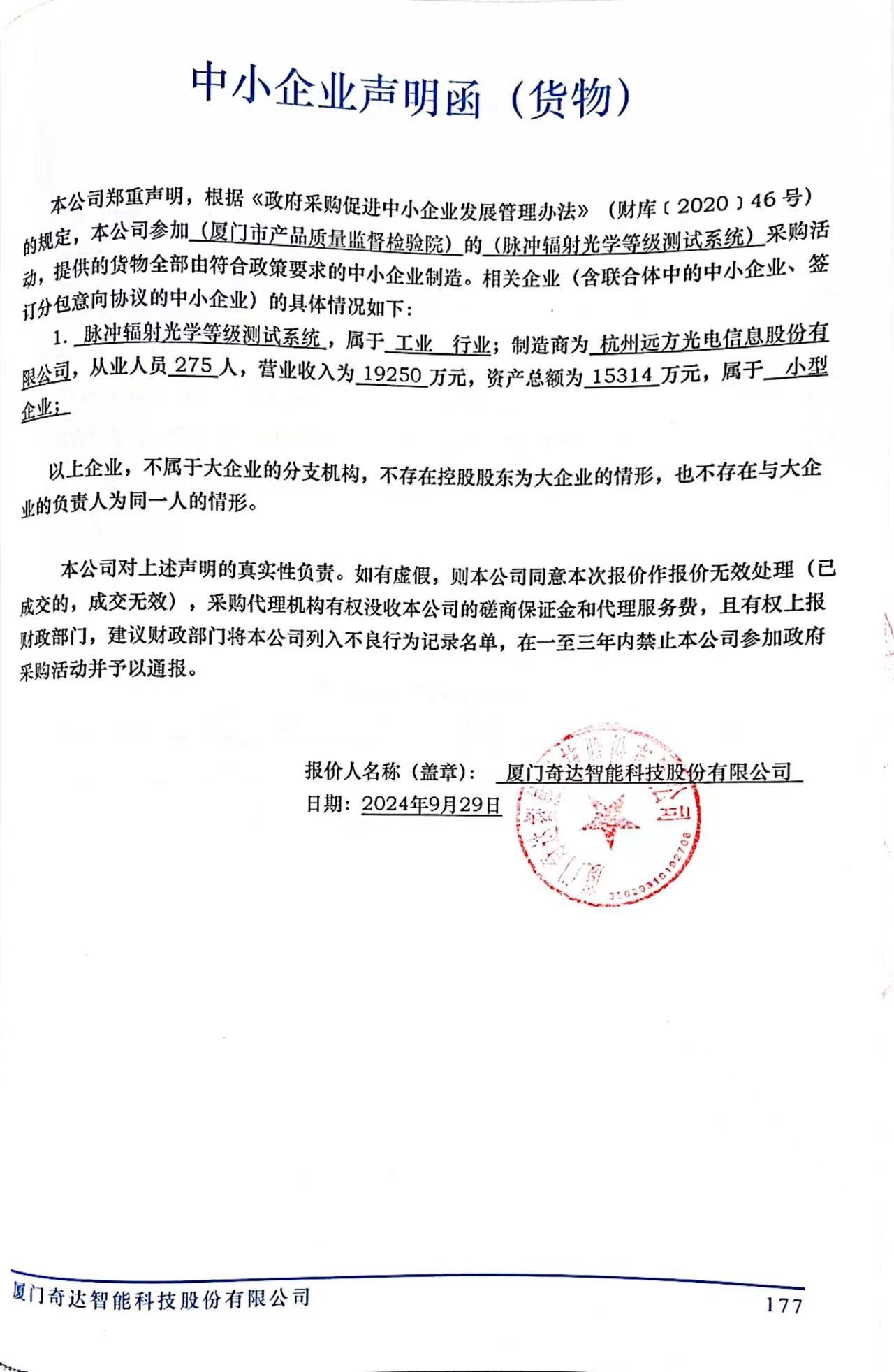 2、定标日期(确定成交日期):2024年9月29日
