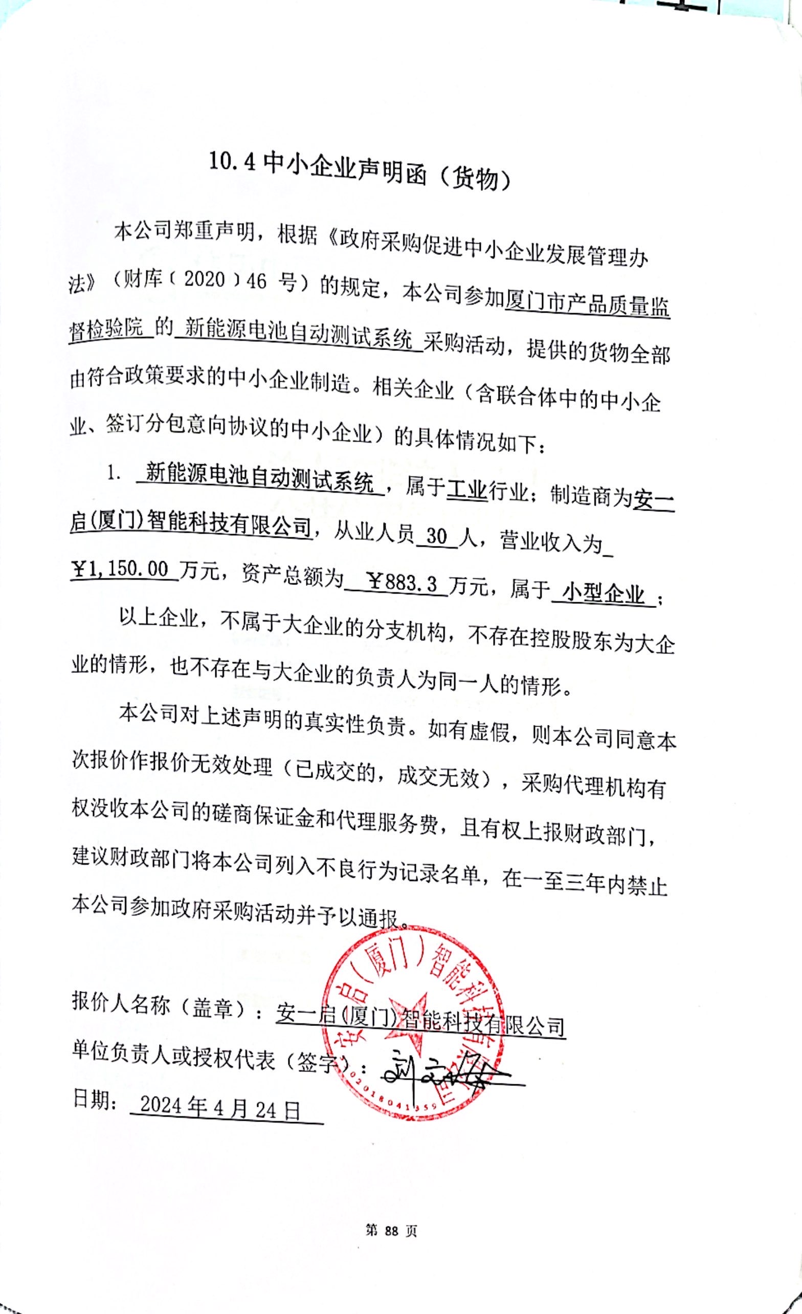 厦门万翔-竞争性磋商-XM2024-TZ0190新能源电池自动测试系统项目中标(成交)结果公告