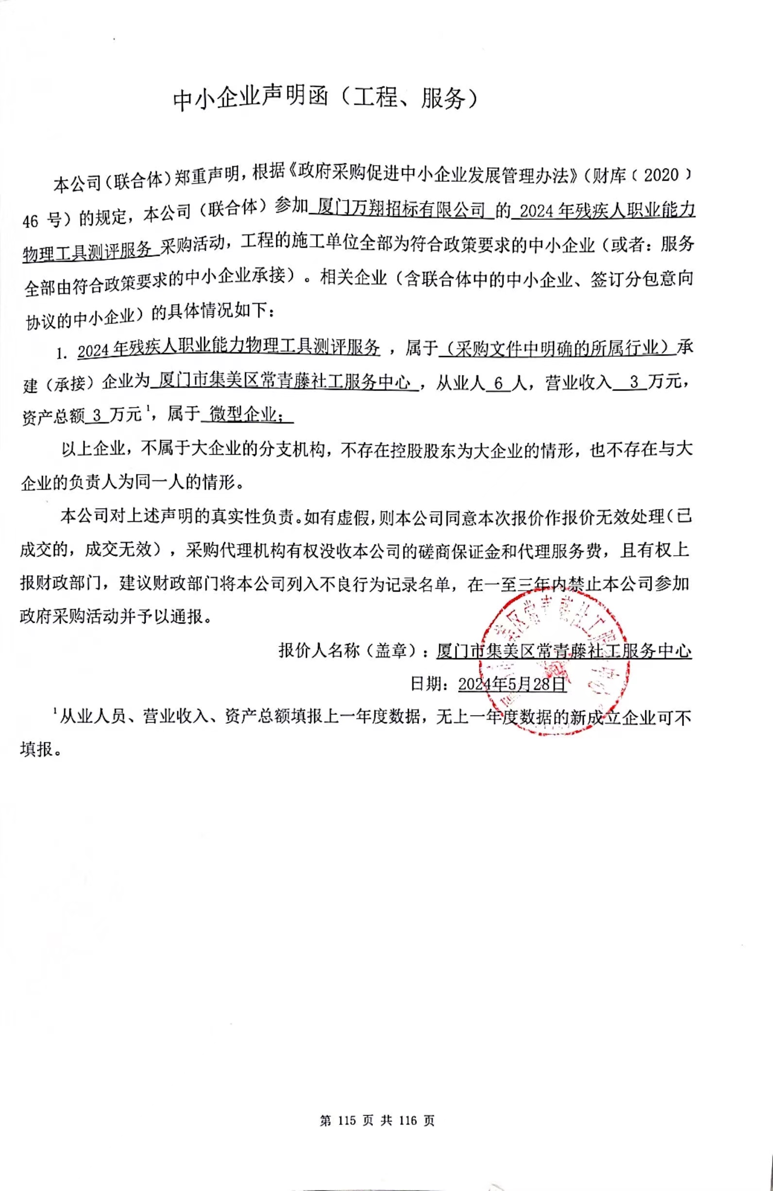 厦门万翔-竞争性磋商-XM2024-TZ0234-2024年残疾人职业能力物理工具测评服务项目中标(成交)结果公告