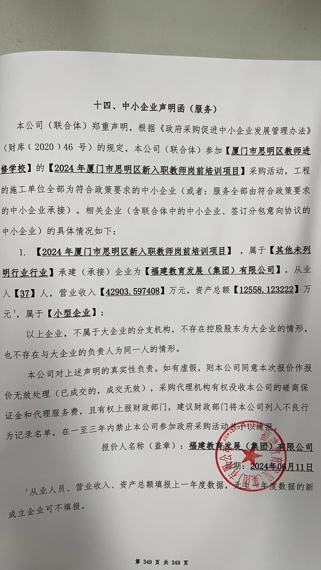 《中小企业声明函》