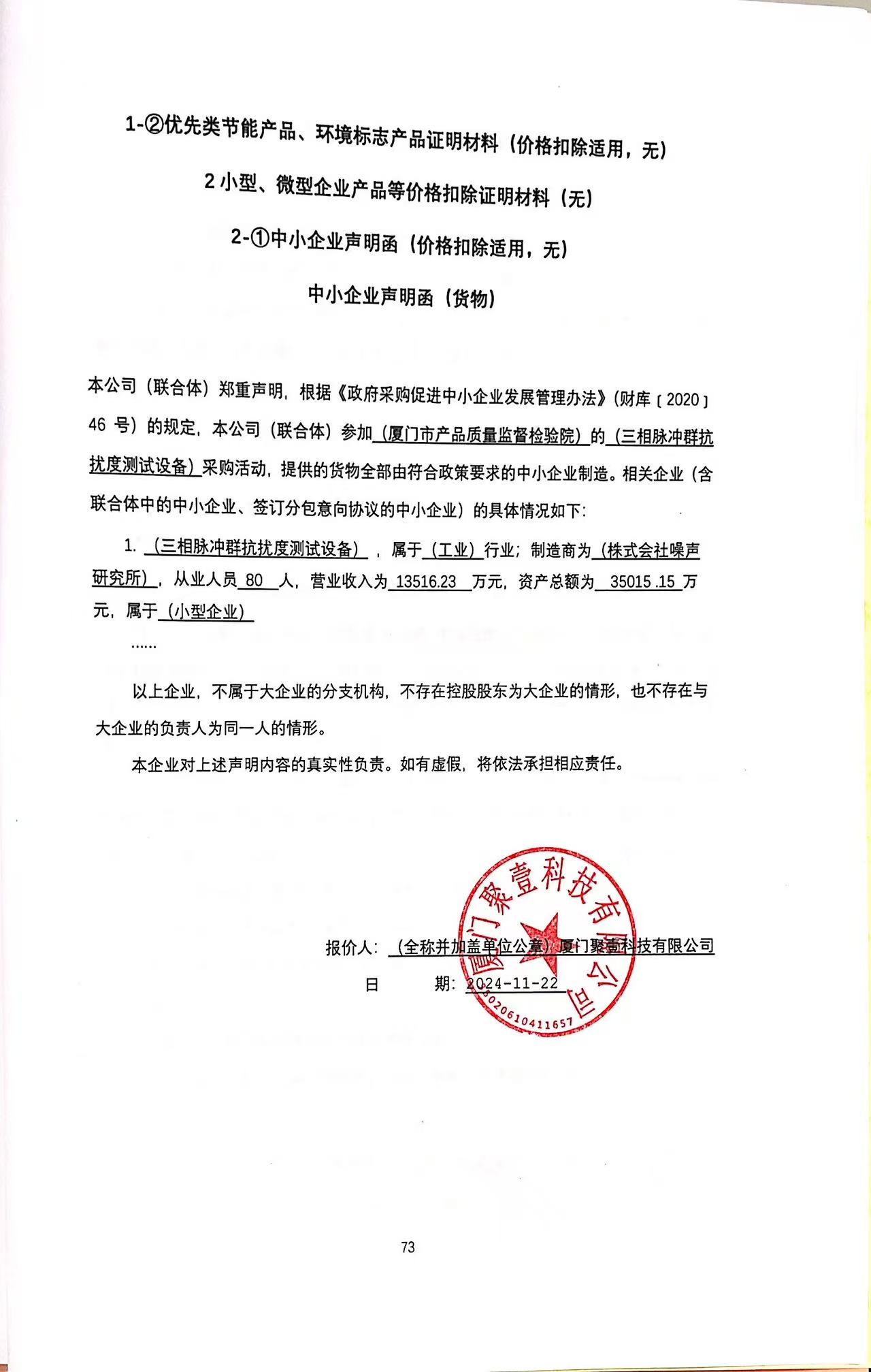 厦门万翔-竞争性磋商-XM2024-TZ0588三相脉冲群抗扰度测试设备项目中标(成交)结果公告